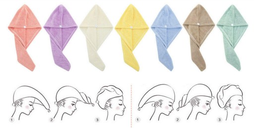 - Ręcznik jest łatwy do założenia - posiada praktyczny guzik, dzięki czemu turban jest stabilny