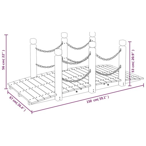 Mostek ogrodowy z poręczami łańcuchowymi, 150x67x56 cm, świerk