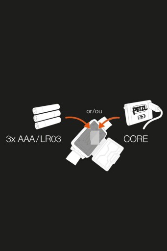 • Zasilanie: 3 baterie AAA/R03 (dostarczane z czołówką) lub akumulator CORE (dostępny jako akcesorium)