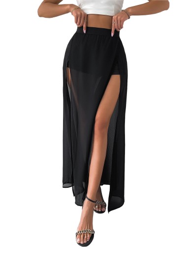 ДЛИННАЯ ЮБКА С ШОРТАМИ, АЛЯ ШИФОН, ЧЕРНЫЙ