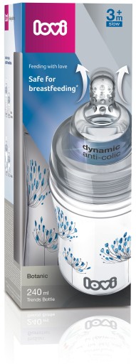 - Wyposażona w profesjonalny smoczek dynamiczny Lovi, przez co jest bezpieczna dla dziecka karmionego piersią, gdyż nie zaburza odruchu ssania i nie koliduje z karmieniem naturalnym.