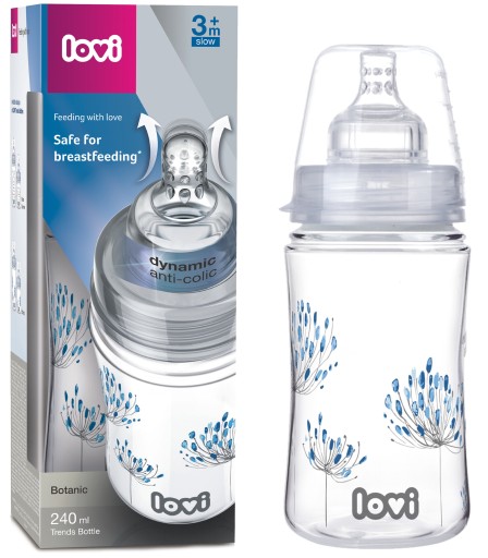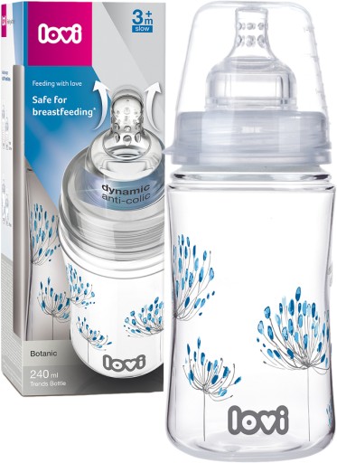 Butelka z dynamicznym smoczkiem Lovi Trends do podawania odciągniętego mleka mamy.