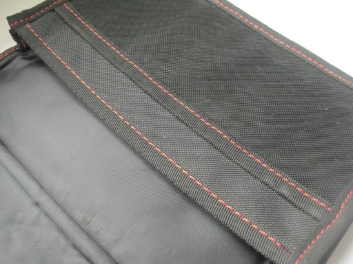 Piękny płócienny materiał, obszyte czerwoną nicią po obwodzie