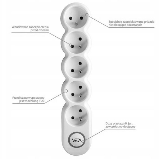 Przedłużacz jest niezwykle praktyczny oraz odporny na uszkodzenia. Dzięki niemu jest możliwość podłączenia do prądu kilka urządzeń w tej samej chwili, nie przejmując się niewielką liczbą gniazdek w pomieszczeniu.