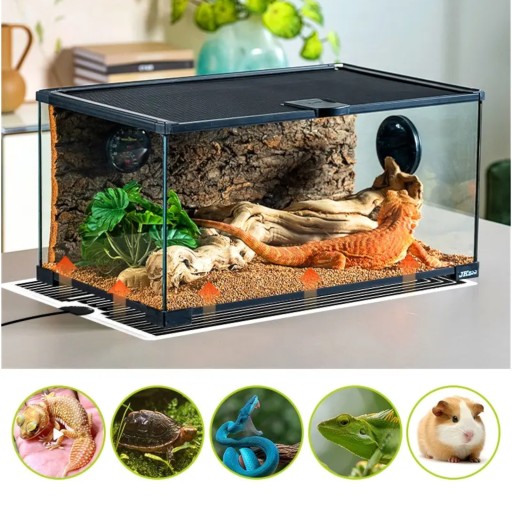 Maty grzewcze przeznaczone do terrarium charakteryzują się niezwykle dużą wydajnością. Aż 86% ciepła wygenerowanego przez matę emitowane jest w kierunku pionowym, bezpośrednio do ogrzewanego terrarium. Zamontowany na przewodzie zasilającym potencjometr pozwala regulować ilość generowanego ciepła. Dodatkową zaletą korzystania z maty grzewczej jest niezwykle niski pobór mocy.