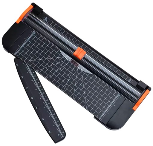 Kompaktowa, ręczna gilotyna do papieru - trymer. Pozwala w łatwy i szybki sposób przyciąć papier do odpowiednich rozmiarów. Posiada podziałkę w calach i centymetrach. Trymer wyposażony został w precyzyjny kątomierz. Współpracuje ze standardowymi rozmiarami papieru (A3, A4, A5, B5). Ruchomy ogranicznik formatu umożliwia dokładne przygotowanie dokumentów do cięcia. Posiada wygodny, doskonale wyprofilowany suwak z ostrzem. Gumowane nóżki zapewniają stabilną pozycję urządzenia podczas pracy.
