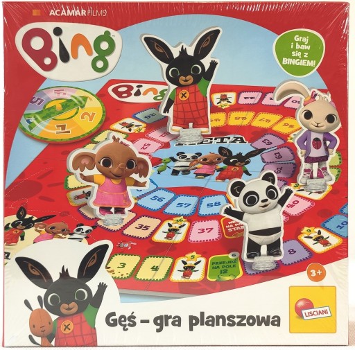 Tradycyjna gra planszowa - Gęś, w wesołym towarzystwie Binga i jego przesympatycznych przyjaciół! Podczas zabawy należy kręcić spinnerem i przesuwać się naprzód o wskazaną ilość pól. Na planszy znajdują się także pola specjalne, które uatrakcyjnią zabawę. Produkt przeznaczony jest dla najmłodszych dzieci i rozwija umiejętność relacji z innymi.