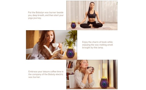 Efekt fajerwerków 3D o wysokiej jasności - Nie zniechęcaj się pierwszym spojrzeniem! Na pierwszy rzut oka nasz elektryczny palnik do wosku jest wykonany ze stylowego srebrnego lustrzanego szkła. Ale kiedy produkt jest włączony, to jak zabawa w magię, zobaczysz oszałamiający efekt fajerwerków 3D tego podgrzewacza do topienia wosku. Efekt fajerwerków tego palnika do wosku może być żywym dodatkiem do każdego stylowego pomieszczenia!