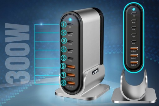 ⚡ WEBSKI® MEGA TOWER DESKOP 300W- 5xUSB-C Power Delivery 40W + 3xUSB 5V/2.4A QUICK CHARGE 3.0
