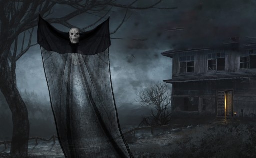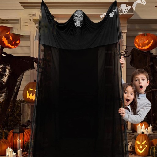 ПОДВЕСНОЕ УКРАШЕНИЕ ПРИЗРАКА С ПОДВИЖНОЙ МАСКОЙ СКЕЛЕТА 400х200см