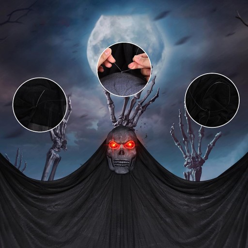 🎃 Straszliwa atmosfera: Z długą sztuczną maską ze szkieletem, czerwono świecącymi oczami, nasz duch lata w północy, tworząc niezapomniany klimat Halloween!