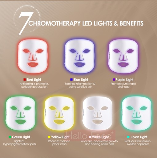 - ✅ Zaawansowana Technologia LED: Maska wykorzystuje siedem długości fal światła LED, dedykowanych do różnych problemów skórnych.