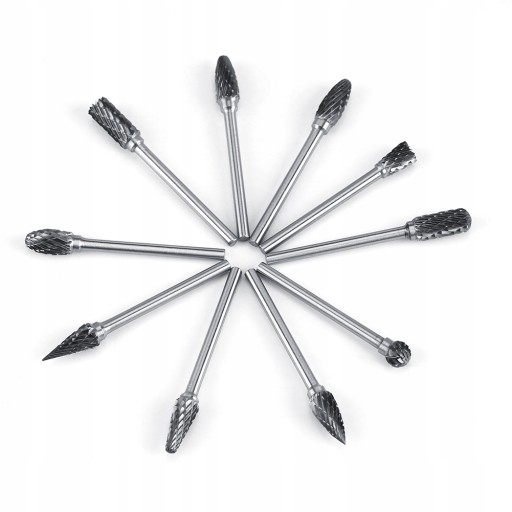 Opis: Jest to zestaw 10 wierteł obrotowych o różnych kształtach do różnych celów i może być używany do cięcia żeliwa, staliwa, stali węglowej, stali stopowej, stali nierdzewnej, miedzi, aluminium, marmuru, jadeitu, kości itp. Cechy: Te żarna są wykonane ze stali węglikowej wolframu, co zapewnia dużą twardość i odporność na ścieranie. Łącznie jest 10 sztuk zadziorów o różnych kształtach, które można wykorzystać do wielu celów. Okrągły trzon o średnicy 3 mm pasuje do wielu narzędzi zasilanych elektrycznie lub pneumatycznie. Może ciąć żeliwo, żeliwo, stal węglową, stal stopową, stal nierdzewną, miedź, aluminium, marmur, jadeit, kość itp. Szeroko stosowany do rzeźbienia, kształtowania i usuwania ostrych krawędzi lub narożników, zadziorów i nadmiaru materiału.