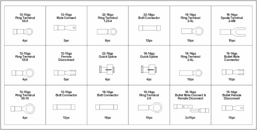 Uniwersalny zestaw konektorów i złączy elektrycznych do stosowania przez elektryków oraz przez mechaników w samochodach osobowych, ciężarowych i maszynach budowlanych.