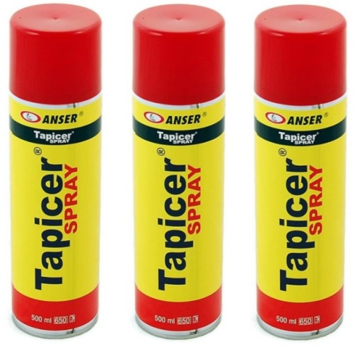 Klej TAPICER spray 500ml firmy ANSER to wysokojakościowy klej o uniwersalnym zastosowaniu. Dzięki szybkiej i wygodnej aplikacji aerozolu świetnie nadaje się do prac renowacyjnych i naprawczych mebli tapicerskich tworząc mocną i elastyczną spoinę. Produkt sprawdza się w remontach lub wykończeniach tapicerskich przy samochodach, łodziach, przyczepach kempingowych,studiach muzycznych a także przy tworzeniu wszelkich dekoracji.