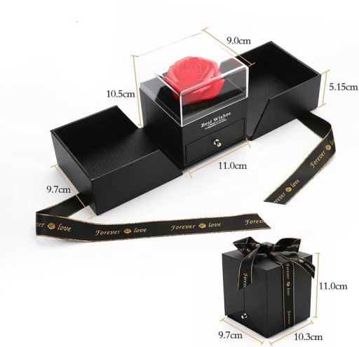 WIECZNA RÓŻA W PUDEŁKU PREZENT SZKATUŁKA+NASZYJNIK