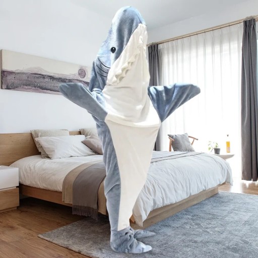 3. Wszechstronne wykorzystanie na różne okazje:Ten koc do noszenia rekina jest idealny na wieczory filmowe, wieczory imprezowe, nocowanie, wycieczki na kemping i nie tylko. Może być używany jako kostium, strój cosplay, odzież z motywem rekina, odzież do salonu, a nawet jako kombinezon. Jego wszechstronność sprawia, że nadaje się do różnych sytuacji i wydarzeń.