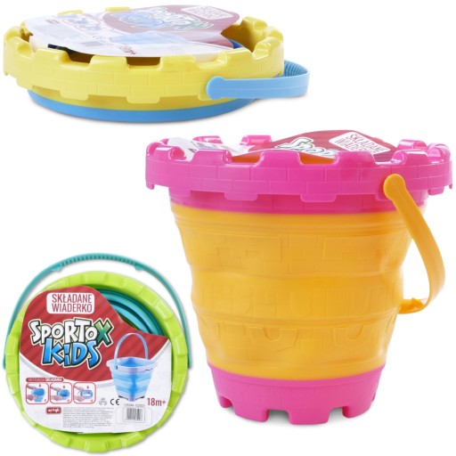 KOLOROWE WIADERKO DO PIASKU SILIKONOWE SKŁADANE ZAMEK SPORTOX KIDS