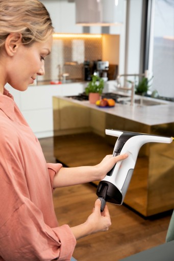 Imponująca wydajność: zestaw akumulatorowy WV 4-4 Plus Window Vac imponuje wymiennym akumulatorem zapewniającym czas pracy bez przerw, wskaźnikiem stanu akumulatora LED, a także innowacyjnym silikonowym piórem, które umożliwia czyszczenie okien aż do krawędzi podłogi. Inteligentne połączenie butelki z spryskiwaczem i ściereczki z mikrofibry, a także funkcja ssania odkurzacza do okien gwarantują lśniące okna - bez smug i pozostałości. Wszystkie inne gładkie powierzchnie można również łatwo wyczyścić. Mycie okien ergonomicznym, akumulatorowym zestawem Kärcher WV 4-4 Plus Window Vac jest szczególnie higieniczne, ponieważ nie ma bezpośredniego kontaktu z brudną wodą, nawet podczas opróżniania i czyszczenia zbiornika. Wymienny akumulator 4 V Kärcher Battery Power jest częścią zestawu. Kompatybilny ze wszystkimi urządzeniami z platformy 4 V Kärcher Battery Power.