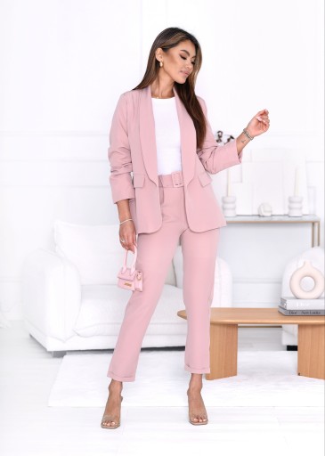 ЖЕНСКИЙ КОСТЮМ, ПИДЖАК, РУКАВА В РЕБЛИКУ, БРЮКИ, РОЗОВЫЙ, РАЗМЕР S
