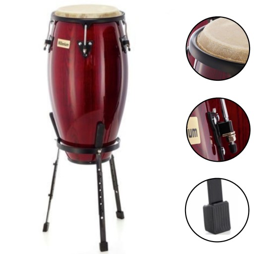 MC890WR Conga 11'' (~27,5 cm) - świetnie wyglądająca i bardzo dobrze grająca konga w kolorze czerwonego wina z drewna eukaliptosowego, z naciągiem z naturalnej skóry. Millenium