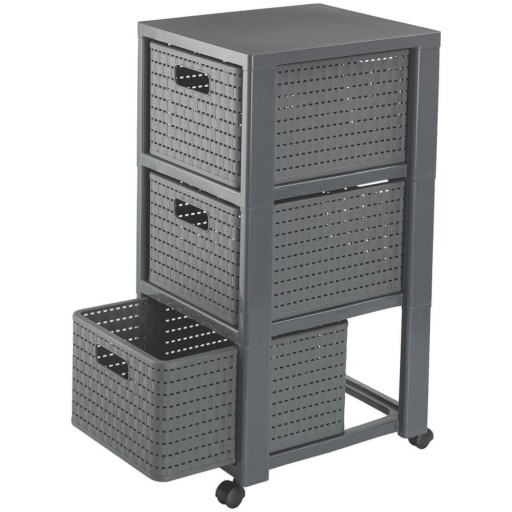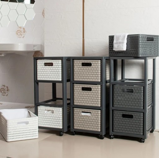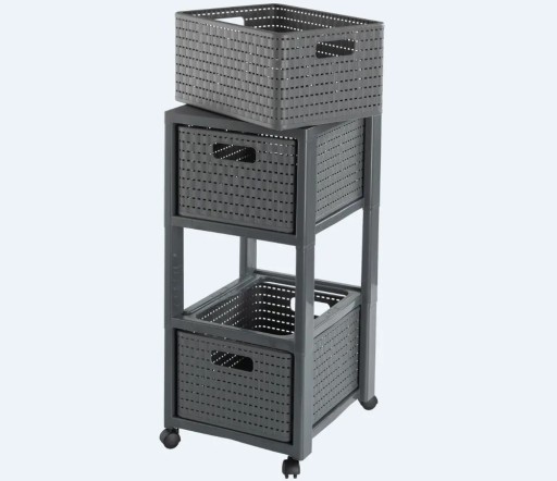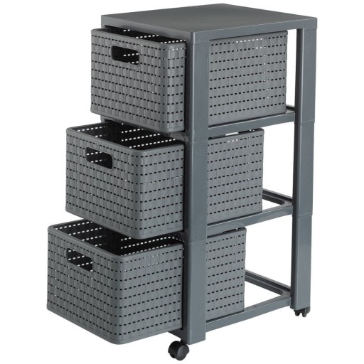 Regał COUNTRY ma elegancki wygląd rattanu. Jest dostępny w wielu kolorach i pasuje do różnych stylów wyposażenia. Kosze w formacie A4 zapewniają wygodne i schludne miejsce do przechowywania. Jednocześnie regał Country jest kompatybilny ze wszystkimi koszami A4 COUNTRY. Każde pudełko z rattanu można łatwo myć w zmywarce. Dzięki szerokości 325 mm, głębokości 375 mm i wysokości 712 mm regał na kółkach pasuje do każdego pomieszczenia. Dzięki czterem obrotowym podwójnym kółkom wieżę z szufladami można elastycznie używać. Regał COUNTRY jest solidny i trwały.