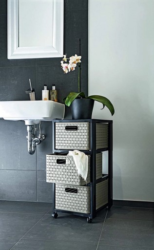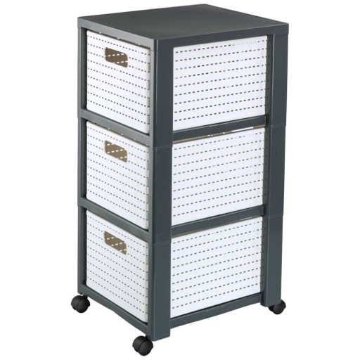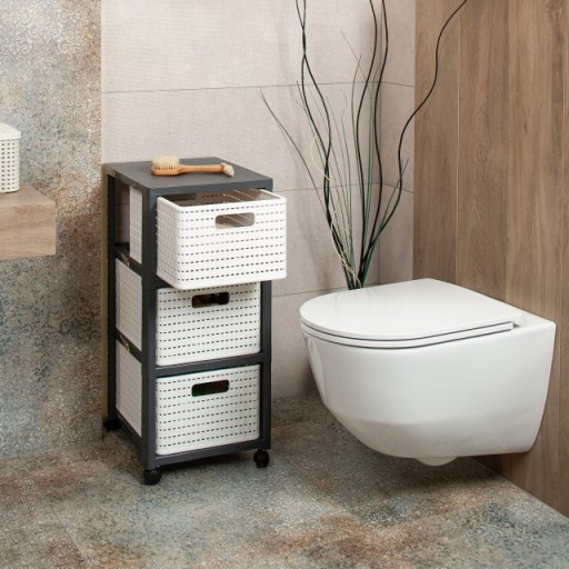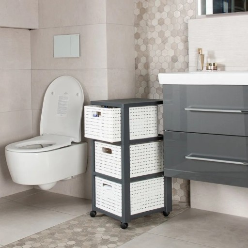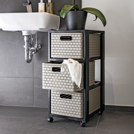 COUNTRY-Tower zapewnia estetyczne przechowywanie w salonie, sypialni, łazience lub pokoju dziecięcym. Każde pudełko z szufladami, które można ustawiać jeden na drugim, samo w sobie przyciąga wzrok. Jeśli mobilny pojemnik przeniesie się do innego pokoju, 3 duże szuflady można łatwo wymienić. Niezależnie od tego, czy chodzi o czyste przechowywanie w biurze, czy zapewnianie porządku w kuchni, regał tworzy wszędzie domową atmosferę. Nawet w małej łazience kompaktowa wieża COUNTRY z łatwością znajduje miejsce. W pokoju dziecięcym łatwa w pielęgnacji wieża z szufladami firmy Rotho służy do przechowywania zabawek i kolorowanek.