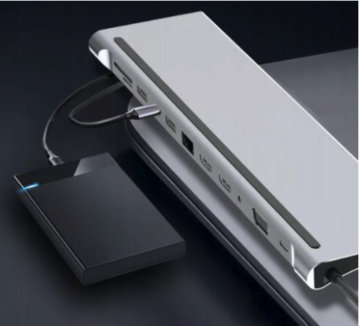 Przejściówka wyposażona jest w 12 wejść, które rozszerzą funkcjonalność Twojego sprzętu. Nowoczesny design i potężne możliwości zamknięte w niewielkiej obudowie. Rozszerz jeden port USB-C na dwanaście najpotrzebniejszych wejść do wygodnej pracy, z których możesz korzystać równocześnie i zwiększ swoje możliwości.