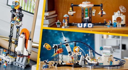 Zestaw zawiera kolejkę górską z wieloma zakrętami i trzema ruchomymi wagonikami, które przejeżdżają obok dekoracyjnej rakiety kosmicznej. Klocki konstrukcyjne LEGO spełniają najwyższe światowe standardy bezpieczeństwa.