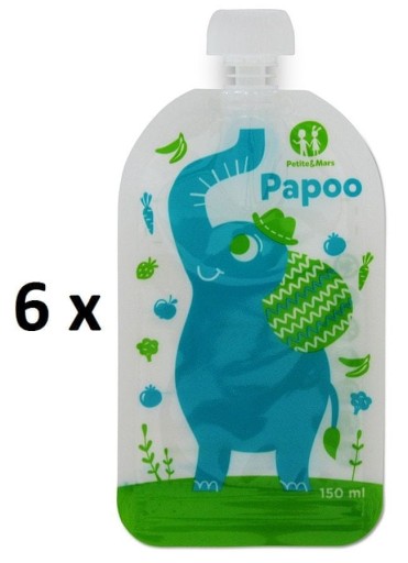 Wielorazowe saszetki na pokarm PAPOO SŁONIK 6szt