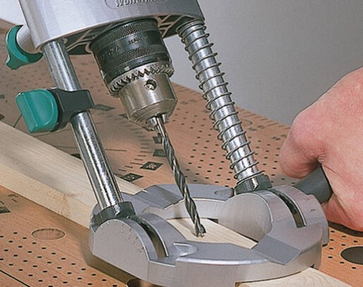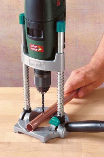 - Praktyczna przystawka do wiertarki elektrycznej, do precyzyjnego nawiercania, wiercenia i wycinania otworów w dowolnych miejscach – w ścianie, nad głową, na skosach, w materiałach okrągłych, listwach i profilach.