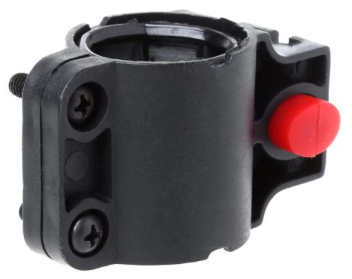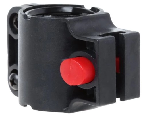 Naciskając czerwony guzik zwalniamy blokadę i możemy uwolnić zapięcie.