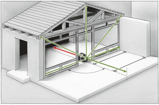 Dodatkowa belka referencyjna 90° służy do pionowania i wyrównywania ścianek działowych.
