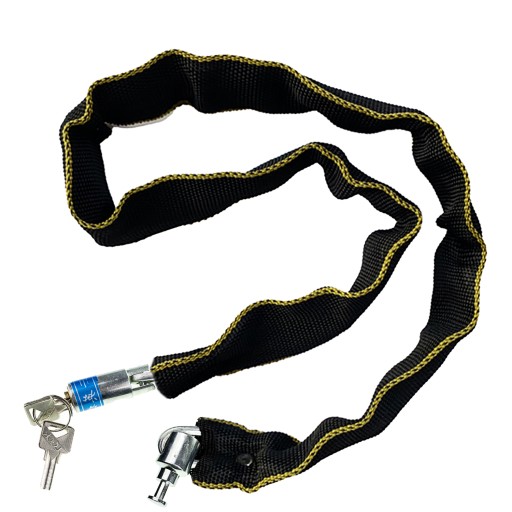 Zabezpieczenie do roweru wykonane z łańcucha oplecionego nylonem. Oplot zabezpiecza rower przed obtarciami od łańcucha.
