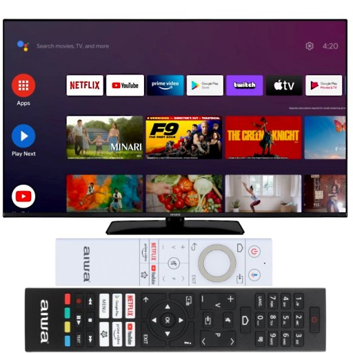 Telewizor AIWA został wyposażony w intuicyjną platformę ANDROID TV, dającą użytkownikowi dostęp do aplikacji poprzez przyjazny interfejs.