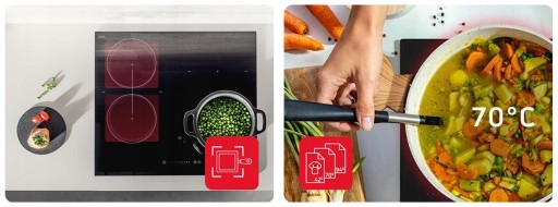 Automatyczna aktywacja pola i dostosowanie pola grzania do wielkości i kształtu naczynia.