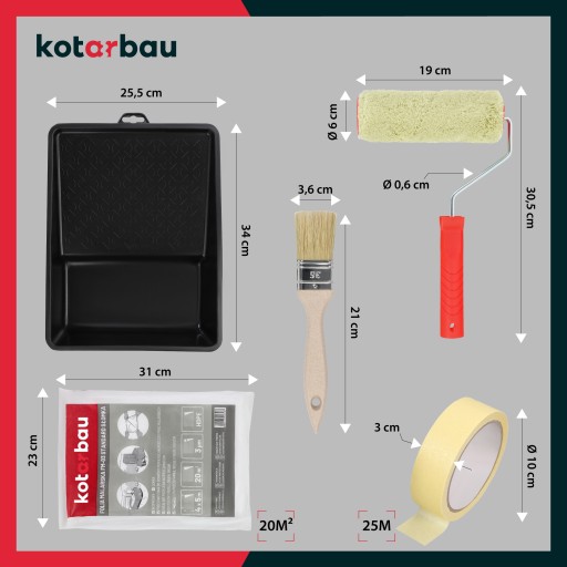- Dzięki dołączonej kuwecie i taśmie malarskiej komplet jest gotowy do bezzwłocznego użycia.