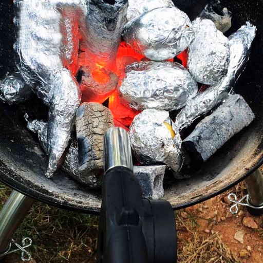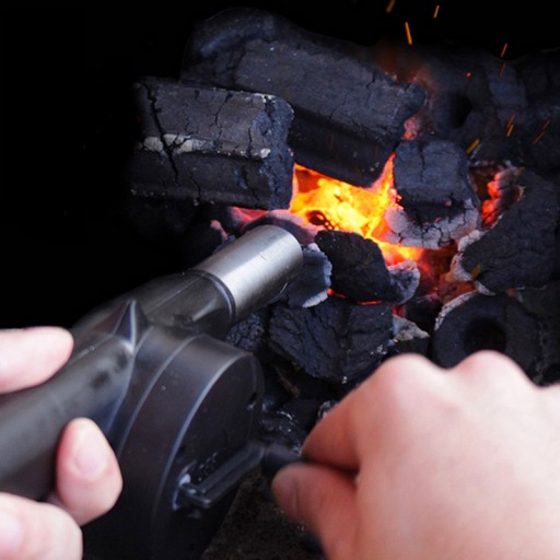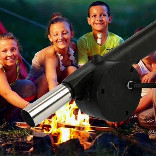 - Użycie dmuchawy jest niezwykle proste, wystarczy zbliżyć się do ognia lub żaru i kręcić korbką