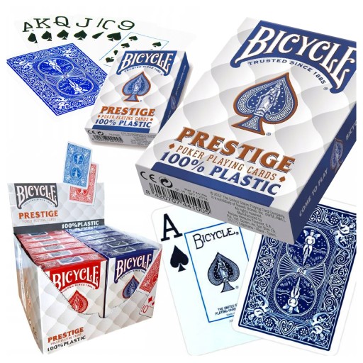 ⭐ KARTY DO GRY 100% PLASTIKOWE BICYCLE PRESTIGE 2 TALIE RED/BLUE JUMBO POKER