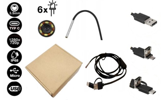 ЭНДОСКОПНАЯ КАМЕРА ДЛЯ ПРОВЕРКИ 1280x720p ПРИЛОЖЕНИЕ ДЛЯ ПК ANDROID JPG AVI 3,9 мм 6 светодиодов
