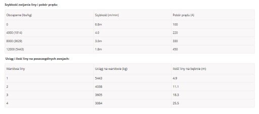 - Uciąg w poślizgu: 12000 lbs - 5443 kg