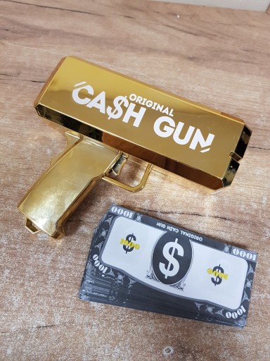 Pistolet na gotówkę: pozwól, by dolary padały dzięki temu oryginalnemu pistoletowi na pieniądze. Zostań prawdziwym rabusiem bankowym jak w serii House of Money i rzuć w powietrze niewłaściwe dolary! Spraw, żeby padało!
