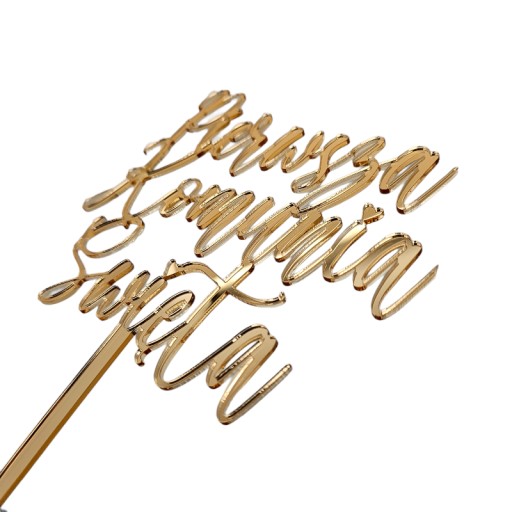 Złote litery "Pierwsza Komunia Święta" stworzone są z najwyższej jakości plexi, co nadaje im wyjątkowego blasku i trwałości. Ten stylowy topper na tort jest nie tylko ozdobą, ale również pięknym pamiątkowym elementem tego szczególnego dnia. Złote lustro plexi dodaje mu niepowtarzalnego uroku, będąc zarazem eleganckim akcentem na każdym rodzinnym przyjęciu. To idealny sposób, aby podkreślić doniosłość i uroczystość pierwszej komunii, tworząc niezapomnianą atmosferę podczas tego wyjątkowego wydarzenia.