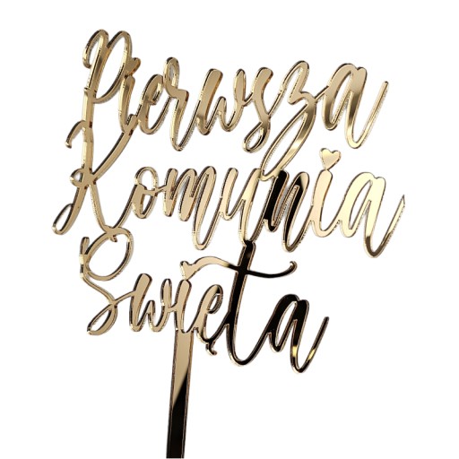 Topper na tort "Pierwsza Komunia Święta" w złocie to nie tylko ozdoba, ale również pamiątka tego ważnego momentu. Doskonale wpisuje się w aranżację tortu komunijnego, dodając mu wyjątkowego charakteru i podkreślając znaczenie tej chwili.
