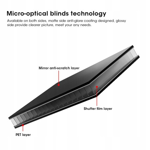3. Technologia żaluzji mikrooptycznych, dostępna po obu stronach, zaprojektowana matowa powłoka przeciwodblaskowa, strona błyszcząca zapewnia wyraźniejszy obraz, spełniając różne potrzeby.