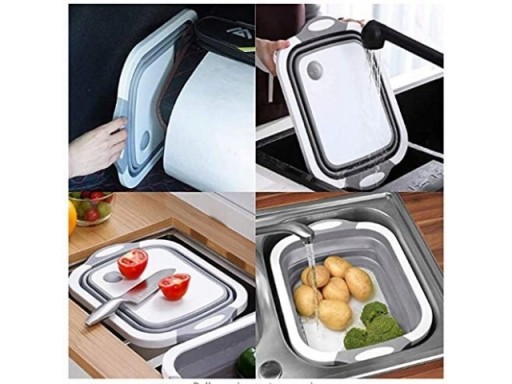 Idealna do mycia owoców i warzyw. Po złożeniu zajmuje bardzo mało miejsca, można ją łatwo schować. Może służyć także jako deska do krojenia. Idealna do kuchni w której wiecznie brakuje miejsca.