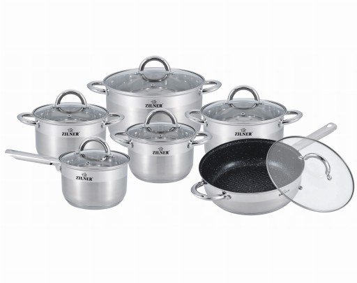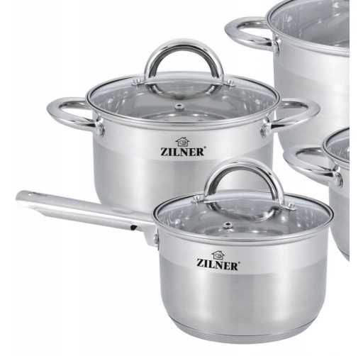 Zestaw 4 garnki, rondel i patelnia z pokrywkami Zilner ZL 8107 - 12 elementów