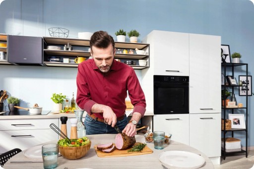 Doskonałe wypieki to nie tylko kwestia umiejętności, ale przede wszystkim odpowiedniego piekarnika. Nowa konstrukcja komory piekarnika Amica ED37515V STUDIO gwarantuje idealną, równomierną dystrybucję ciepła oraz stabilną temperaturę w całym piekarniku. Dzięki temu możesz przygotować dużą porcję wypieków, mając pewność, że będą one równo zarumienione i wypieczone. Komora jest ponadto większa i ma więcej poziomów pieczenia – teraz możesz upiec przysłowiowe kilka pieczeni na jednym ogniu! Większe są też blachy, a nowa osłona wentylatora przyspiesza nagrzewanie – do 150°C w zaledwie 3 minuty!. Z BakingPro System® możesz piec więcej, szybciej, lepiej i wygodniej – a codzienne obowiązki staną się przyjemnością!