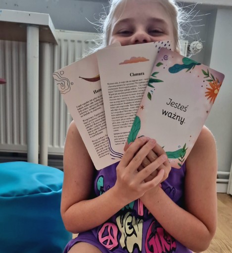 "Moje autorskie materiały i pomoce psychologiczne z powodzeniem możesz wykorzystać w domu, w gabinecie czy podczas zajęć warsztatowo-rozwojowych. Tworząc swoje produkty, ważne są dla mnie dwie rzeczy. Chcę, aby były one oparte na rzetelnej wiedzy psychologicznej (żebyś miał pewność, że zawarte w nich pomysły/strategie działają). Równie ważne jest dla mnie zadbanie o ich formę – tak, aby były one interesujące dla odbiorców, zwłaszcza tych najmłodszych".