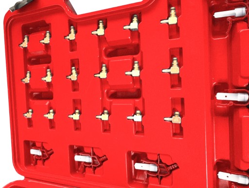 Przelewowy zestaw diagnostyczny do wtryskiwaczy COMMON RAIL. Na wyposażeniu miernika znajdują się końcówki do wszystkich produkowanych aktualnie systemów Common Rail t.j.: Bosch, Denso, Delphi i Siemens.